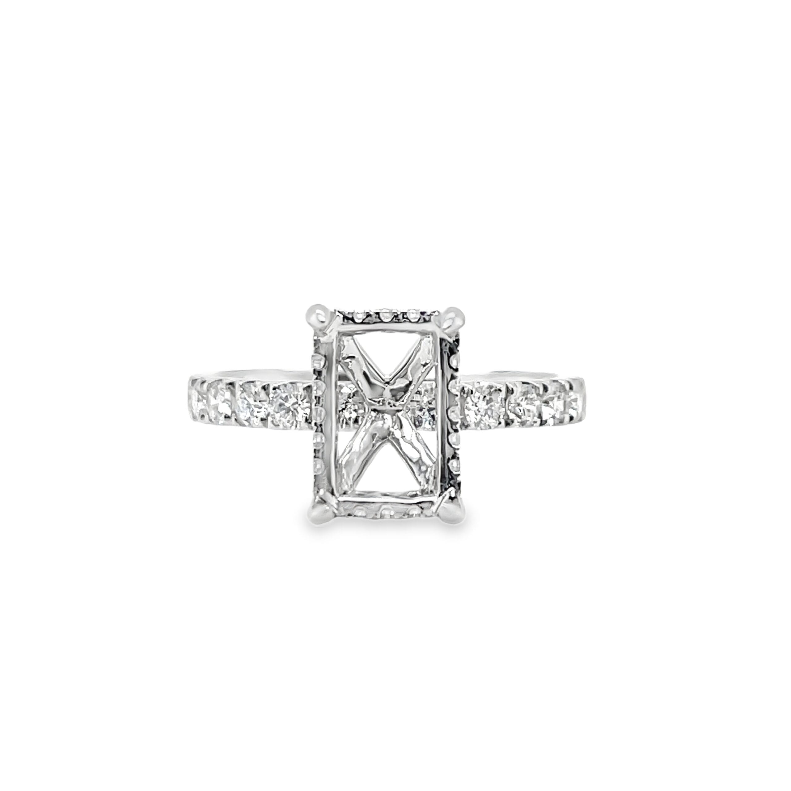 Cushion Halo Diamond Engagement Ring Setting in 14k White Gold